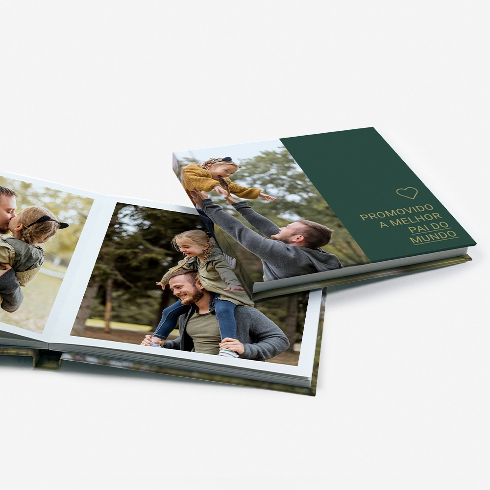 A capa rígida em cartão duro oferece proteção adicional e um acabamento elegante ao teu álbum.