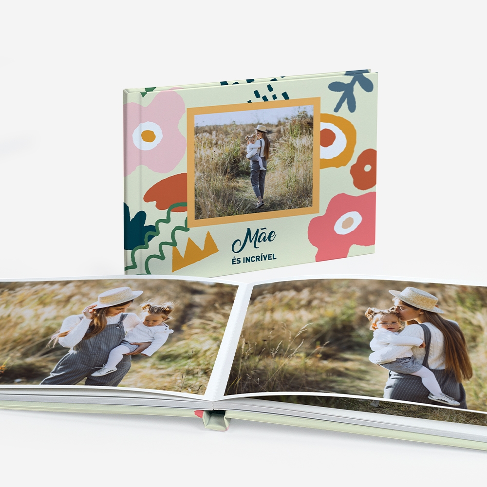A capa rígida em cartão duro oferece proteção adicional e um acabamento elegante ao teu álbum.
