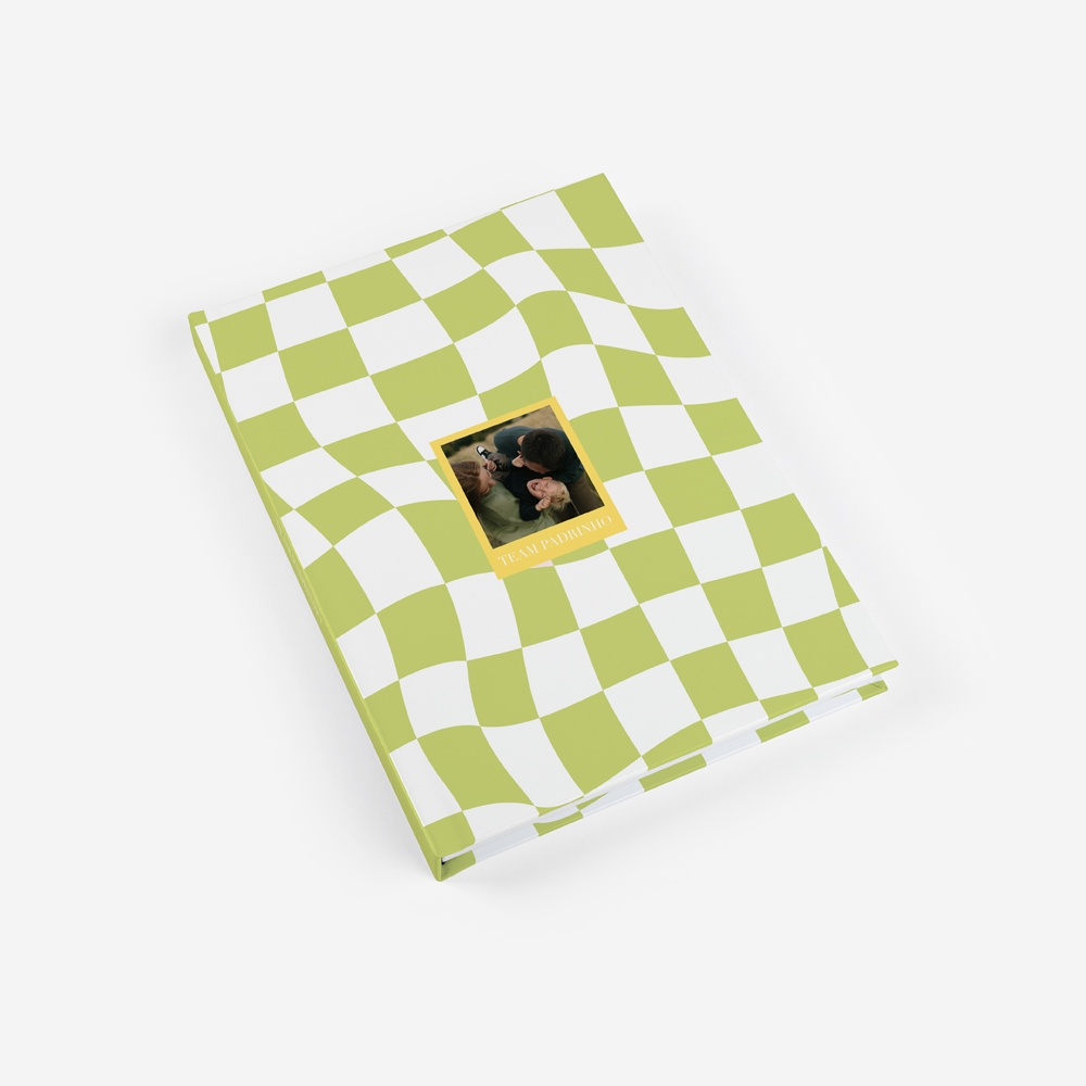 Mais do que um padrinho, um companheiro de equipa para a vida. O tema Team Padrinho utiliza um padrão checkered em verde sage, a cor do momento, para criar um visual dinâmico, moderno e sofisticado.