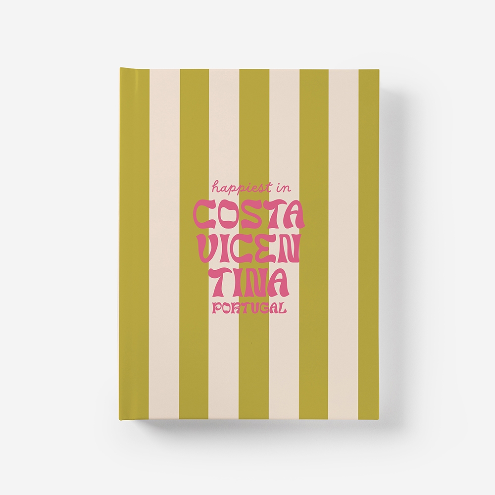 Álbum de cartão resistente, com folhas em branco. Estas possuem linhas para que possas escrever mensagens ao lado das tuas fotografias.