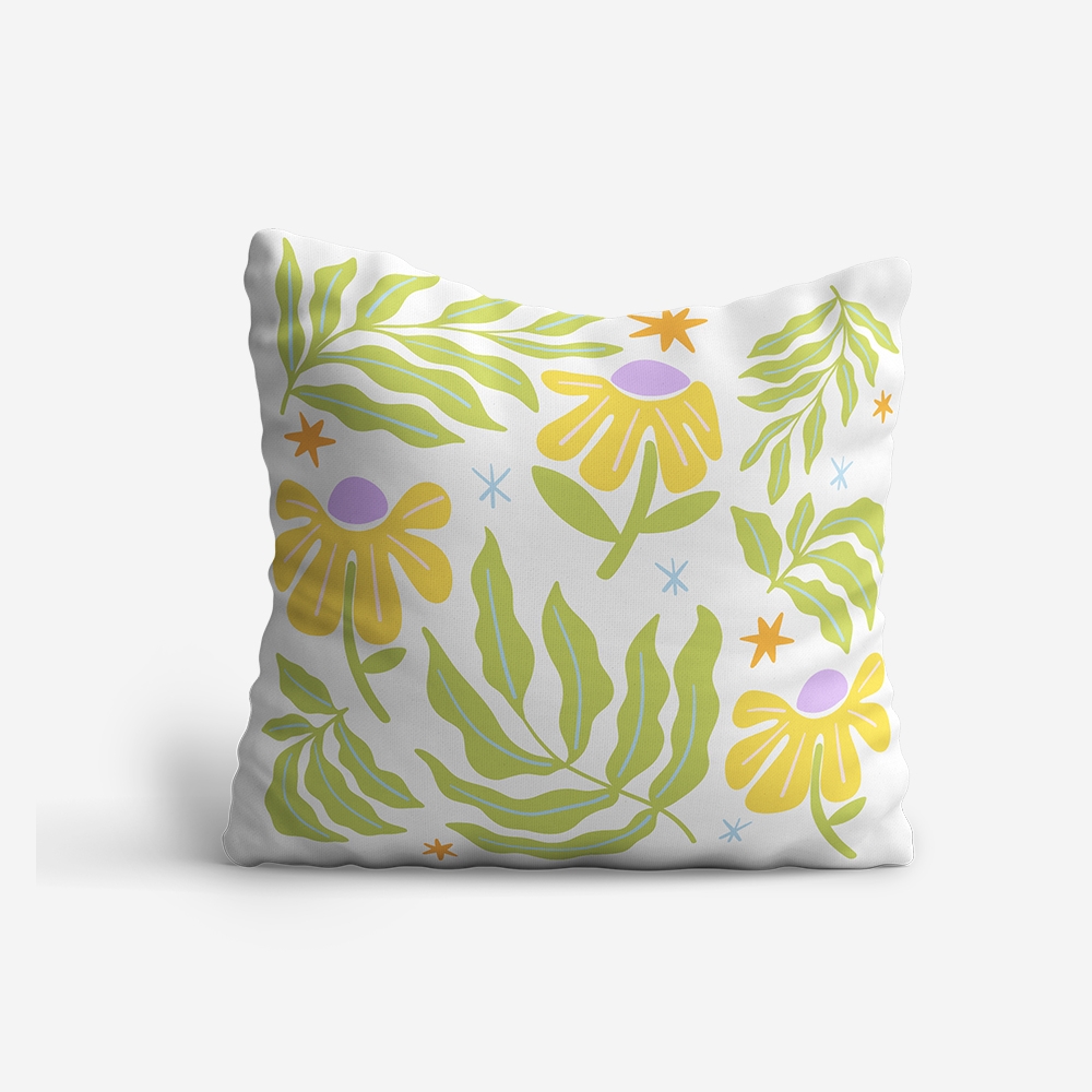 Quem disse que a decoração tem de ser aborrecida? Com folhagens verdes e flores num amarelo vibrante, esta peça é o truque mais rápido para dares cor à tua casa sem esforço. Uma almofada cheia de pinta para aqueles momentos em que o plano é só não fazer nada.