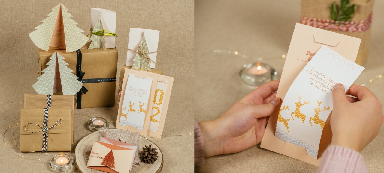 Na Dreambooks somos especialistas em ajudar as pessoas a marcarem a diferença, sobretudo quando o objetivo é desejar Feliz Natal! E para isso, todos os detalhes contam, por isso, para comemorar esta época de Natal, preparamos alguns modelos de cartões personalizados que podes imprimir em tua casa, numa impressora comum, e com alguns passos simples personalizar e oferecer um presente muito especial.