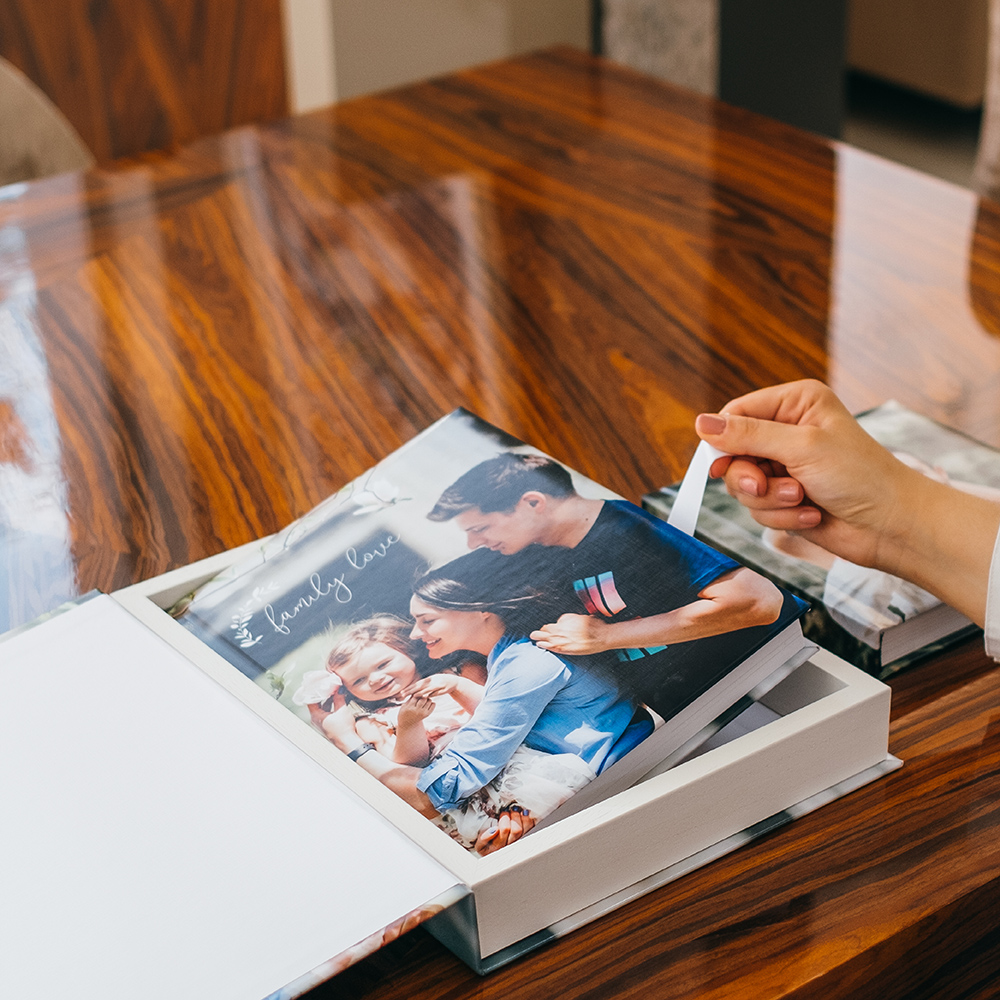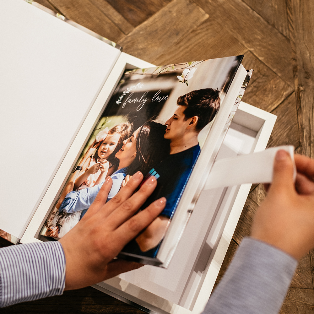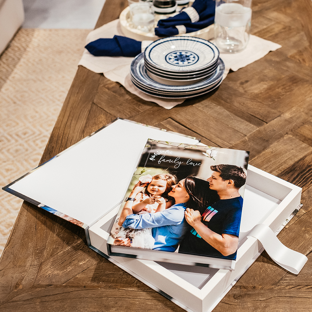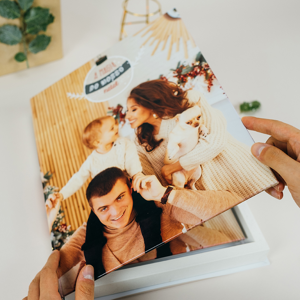 Uma Box é uma embalagem personalizada com o objetivo de proteger os teus Álbuns de Fotos.