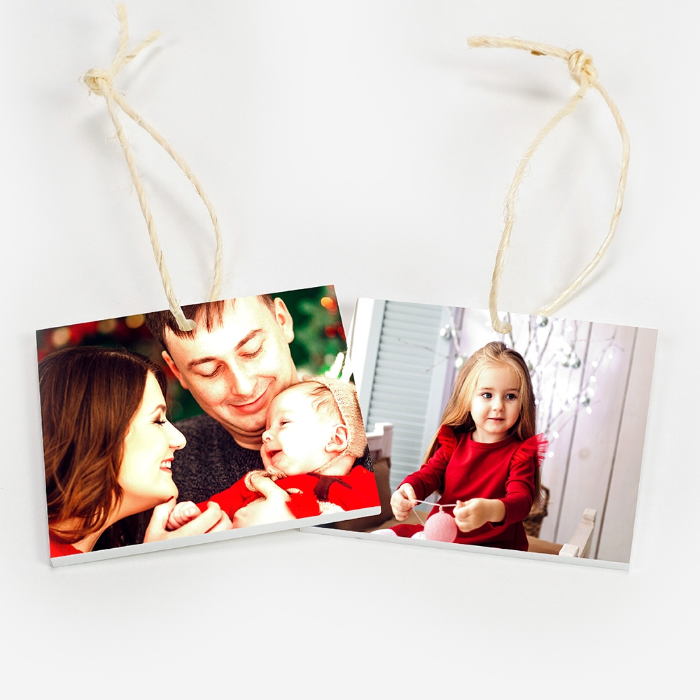 O enfeite tem um acabamento branco no verso, realçando a impressão e conferindo-lhe um toque sofisticado. Acompanha ainda um cordel para pendurar na árvore.