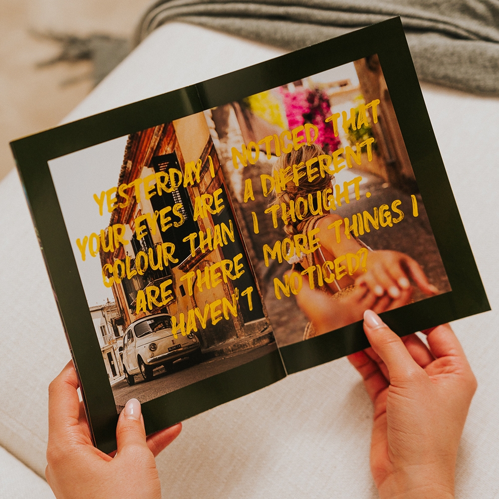Con encuadernación flexible y apertura tipo revista, este producto ofrece una lectura fluida y cómoda, perfecta para hojear recuerdos de forma ligera y desenfadada.