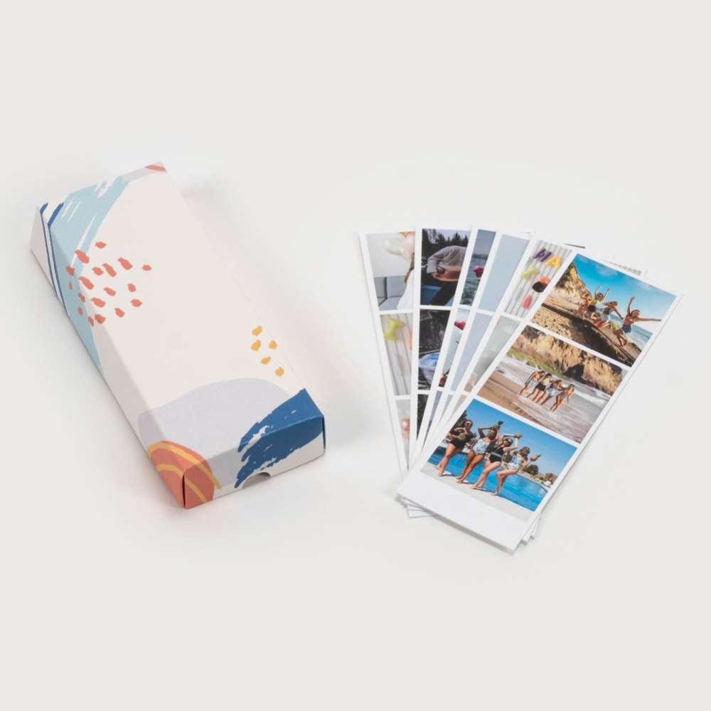 As Insta Stripes são impressas em papel couché de alta qualidade no tamanho 5x15cm e a sua impressão é digital. Podes adicionar uma legenda na parte inferior da foto no próprio editor, ou escrever à mão quando as receberes.